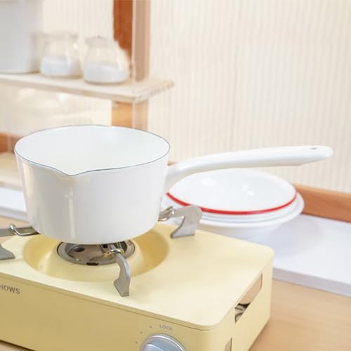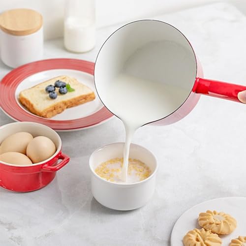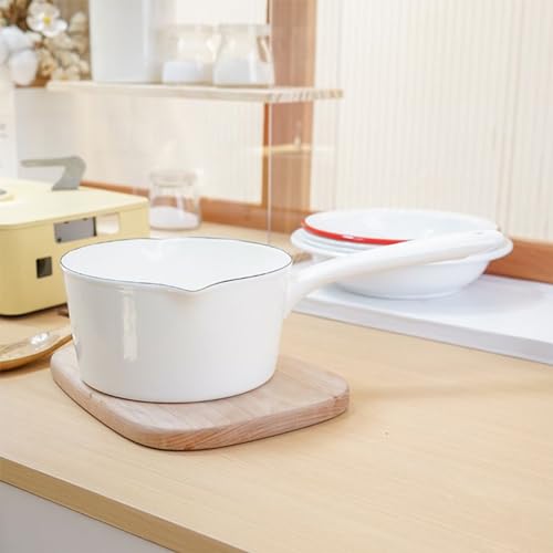 1.2L Milk Pan Milk Pot Tea Coffee Egg Boiling Pot Enamel Milk Pan with Wooden Handle, Nonstick Saucepan Mini Butter Warmer