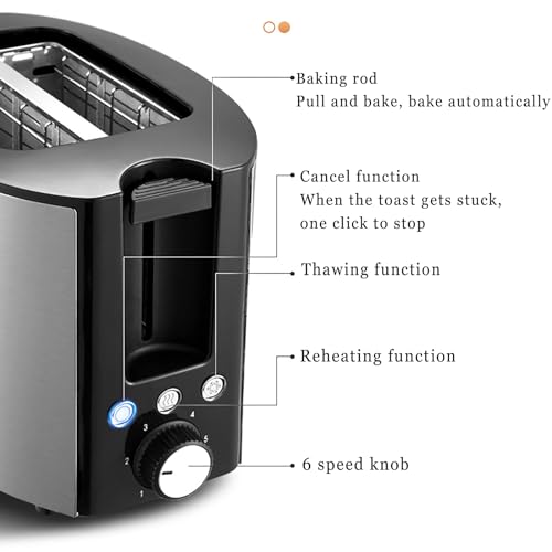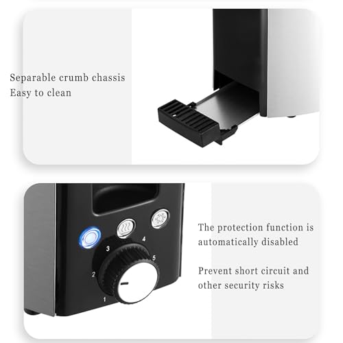 - 【Clean Easily】: Cleaning our 2 slot toaster is a breeze! With a convenient drop-down crumb tray, you won't have to waste any time cleaning up after yourself. With defrost/re-heat function, each gear time is 8%-12% longer than the corresponding normal gear time.