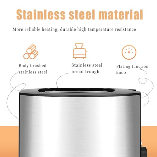 - 【Efficient Toasting】: Use the intuitive button to adjust settings easily and precisely, allowing you to start your day with ease.,and the 2 piece toaster just need 2 minutes to bake the same burnt color,and can make bread up and down heating uniform, avoid unevenness of baking effectively.