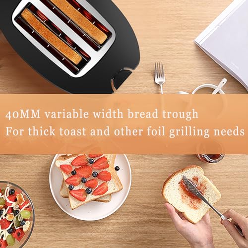 - 【6 Browning Options】:The Toaster featured with 40mm wide slot,which can be used to bake different types of bread,such as waffle,or thick artisan bread.Choosing from lightly golden to deep dark toasted slice from 1(light) to 6(dark) gear accommodated by individual preferences.