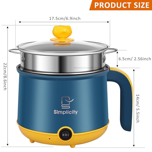 1.8L Mini Electric Cooking Pot with Steam Rack & Handle, 2 Gear Non-Stick Electric Pot, Over-Heating & Boil Dry Protection for Soup, Porridge, Pasta, Ramen Noodle
