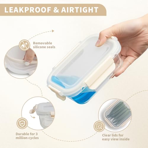 10 Pack Glass Meal Prep Containers, Food Storage Containers with Lids Airtight, Glass Storage Container Set with Lid for Food, Bpa-free, Leak-proof, Microwave Oven Freezer Dishwasher Safe creamy white
