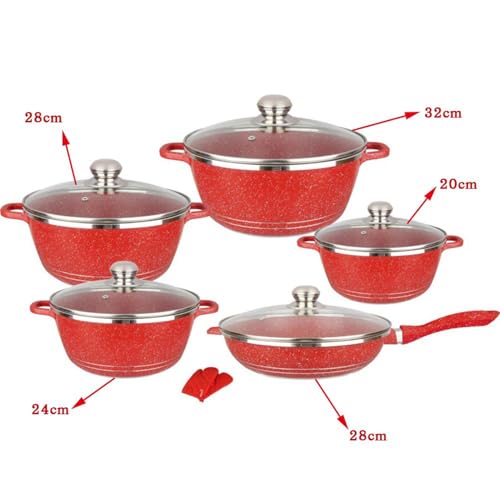 10 Piece Cooking Pot, Nonstick Cookware Sets Cooking Pots and Pans with Glass Lids,Marble Coated Aluminium Home Kitchenware with Saucepans,Frying Pan,Stock Pot