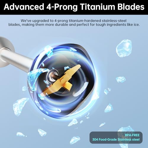 - HIGH POWER AND UNIQUE BLADES ENSURE CONSISTENT AND SMOOTH RESULTS – Smoothies taste better when adding ice cubes and frozen fruits. That's why our immersion blender has distinctive 4-pronged titanium steel blades with a curved design and a powerful 1000-watt motor to help blend hard ingredients and deliver consistently smooth results.