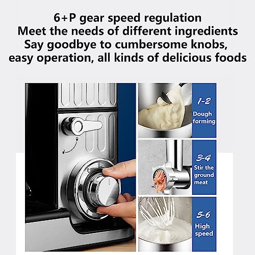 • ★ [3 DETACHABLE ATTACHMENTS & ADJUSTABLE SPEEDS OFFER VERSATILITY] The 3 mixing heads are removable and easy to clean. 1~2 Levels, use dough hook for heavy mixtures(e.g. bread or short pastry); 3~4 Levels, use beater for medium-heavy mixtures(e.g. crepes or sponge mixture); 5~6 Levels, use whisk for light mixtures(e.g cream, egg white, blancmange and under sponge).
