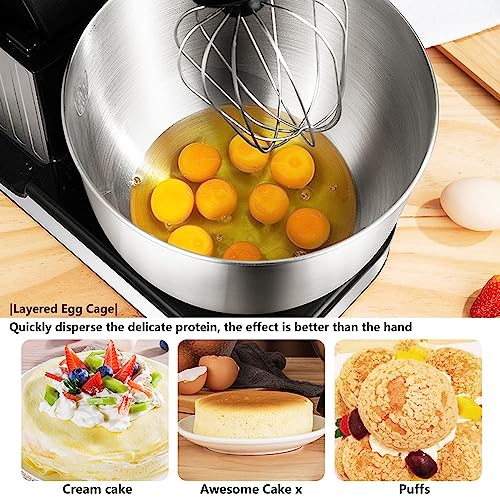 ★ [MULTIFUNCTIONAL] The bowl of the pastry robot is made of stainless steel with a capacity of 5/7L. The dough hook ensures uniform mixing of the dough, the mixer is perfect for mixing bread dough and food, and the whisk is suitable for making cream,etc. The stand mixer is your perfect kitchen accessory for frosting, meringue, creamy dressings, doughs, baked goods and more.
