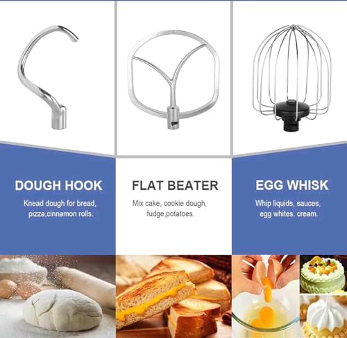 - ❤【3 In1 Kitchen Stand Mixer】Multifunctional kitchen mixer with a flat beater for daily use, a dough hook for kneading heavy dough (like pasta or bread) and a whisk for high speed whipping (meringue or cream), whisk or knead your ingredients.