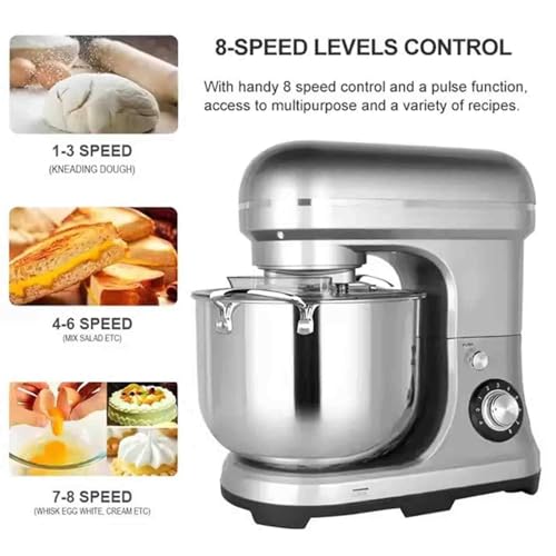 - ❤【8 Level Speed Adjustable】The stand mixer features a selection of 8 speed settings, that access to multi purpose and a variety of recipes what you need. Full metal core for high-intensity operation, long service life, low noise and fast heat dissipation.