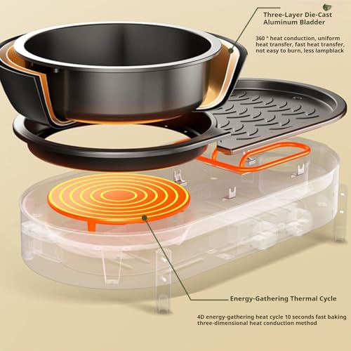 - 【Non-stick coated baking pan】The baking pan is coated with a non-stick coating, which means that very little oil is needed at the beginning, which makes food non-stick and easier to clean. The raised ripples on the plate make grilling healthier and more delicious. Advanced smokeless technology ensures a pleasant cooking environment.
