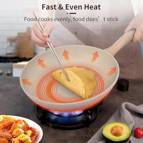 - High-quality material and safe: made of food-safe aluminium alloy + medical stone, with three-layer non-stick coating, PFOA free, heat-resistant up to 260 °C. Healthy cooking, no harmful substances, corrosion-resistant surface, durable performance