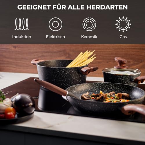 12-Piece Saucepan Set with Non-Stick Coating – Cooking Pot Set with Lid – Induction Pots Set – Pots & Pans Set for All Hobs – Cookware for Gas Stoves and Ceramic Hobs (Granite)
