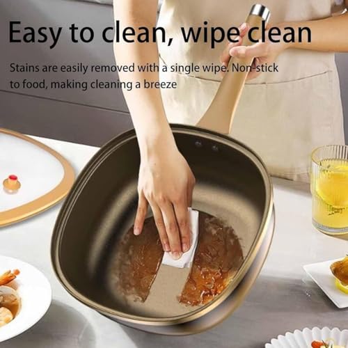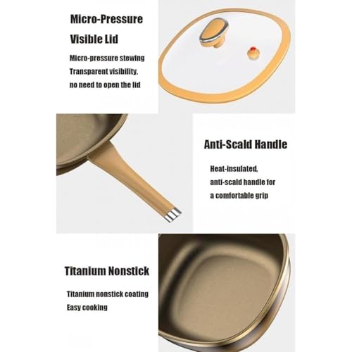 - Durable Titanium Alloy Construction: Built with a premium titanium alloy base reinforced with fine iron, this non-stick pot delivers long-lasting strength and excellent resistance to warping. The sturdy build ensures even heat distribution across the surface, helping you achieve consistent results whether you are frying, stewing, or braising different dishes