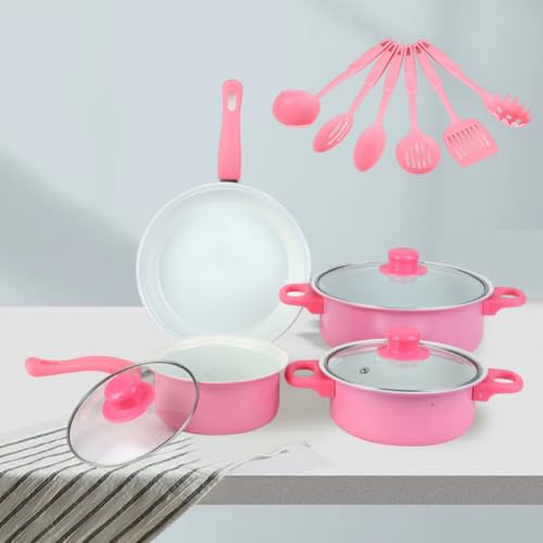 12Pcs Non Stick Cookware Set Cooking Pot Set with Lid for All Hob (Pink)