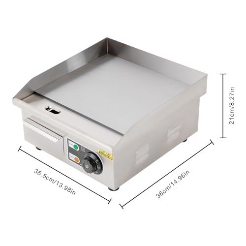 14Inch / 36cm Commercial Electric Griddle, 2000W Stainless Steel Non-Stick Grill Electric Griddle Large Hotplate Burger Bacon Kitchen BBQ