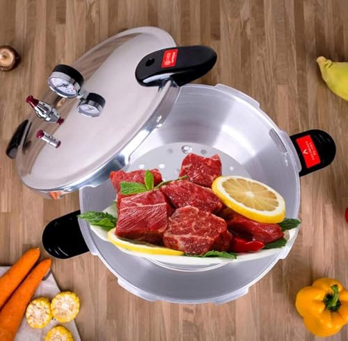 - 🌈✅【Pressure canner and cooker】: 15 22 25 litre steam pressure pot means that you can canning glasses around glasses with fresh vegetables,meat,poultry,seafood and more.Each pressure preserver is made of thick aluminium and stainless steel.It can also be used as a kettle for preserving fruit,jam,jellies,pickles and salsa in pins.to get started with home canning whether you are new or an expert Canner!This is the only recommended way of safely canning according to studies by the USDA.