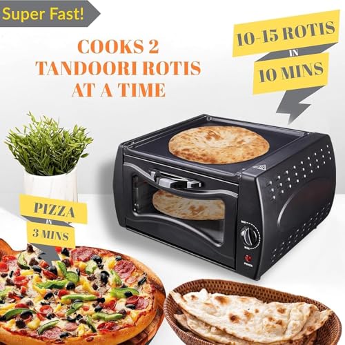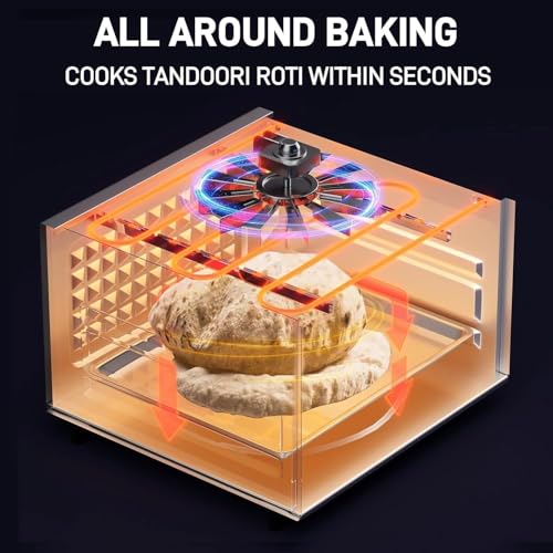 - 【Compact and Lightweight】: tandoori electric oven is 15.5'' W x 15'' L x 10'' H making it perfect for kitchen countertops whilst also having the internal capacity to bake a pizza within 4 minutes and 10-15 Tandoori Rotis in 10 minutes