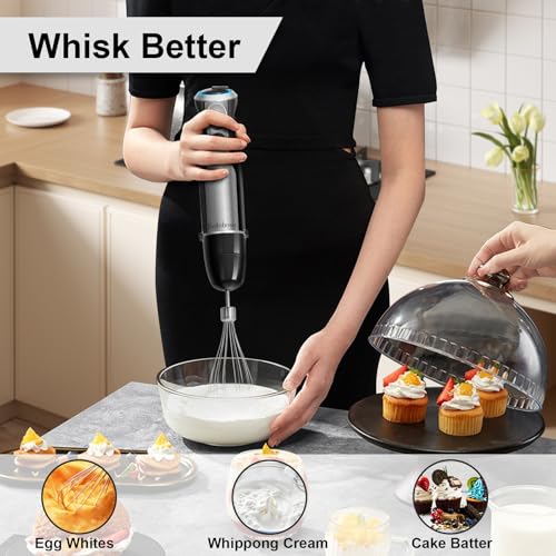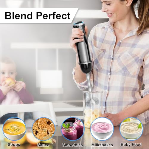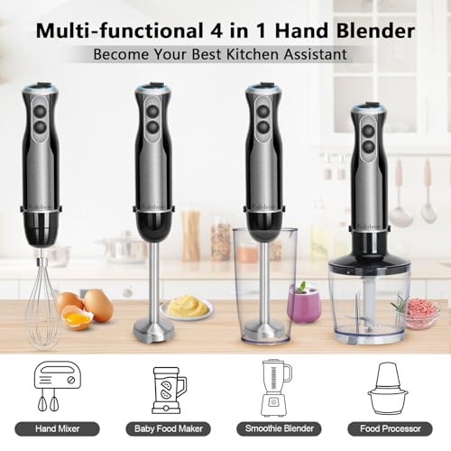 1500W Hand Blender, Kolohoso 4 in 1 Stick Blender Set with 4 Stainless Steel Blades, Immersion Blender with 20 Adjustable Speeds, Handheld Blenders with Whisk, Measuring Mug, Chopper, BPA-Free