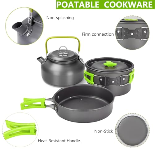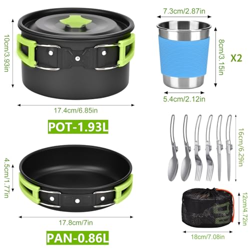 15pcs Camping Cookware Mess Kit,Non-Stick Pot and Pan Set with Kettle Stainless Steel Cups Plates Forks Knives Spoons Lightweight, Fork Spoon Kits for Backpacking, Outdoor Camping Hiking and Picnic