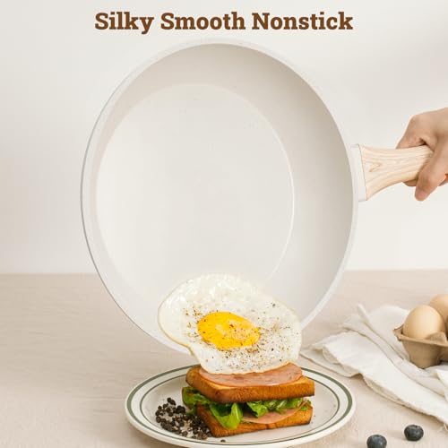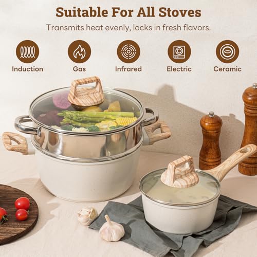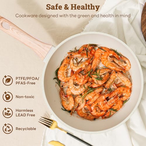 17 Pcs Pots and Pans Set Non stick,Cookware Sets White Granite Induction Cookware, Non-toxic Healthy Non Stick Kitchen Cooking Set with Frying Pans Set, Saucepans (PFAS, PFOA, PFOS Free)