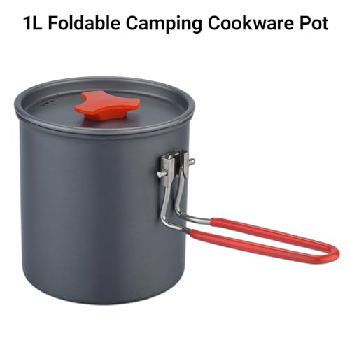 1L Camping Pot, ISFORU Portable Lightweight Backpacking Hiking Outdoor Cookware with Lid, Camping Mess Kit Comes with 500ml Cup and Foldable Cultery Set