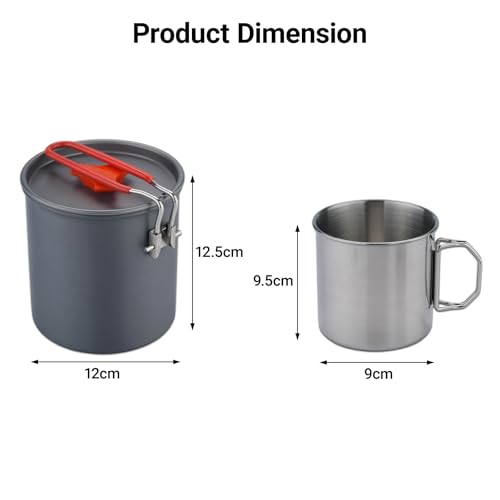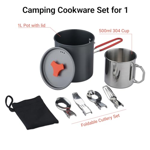 - 7 IN 1 CAMPING POT – This set includes 1L pot, 1 500ml 304-Food-Grade cup, 1 set stainless steel cutlery. It's perfect for a single serving, making it an excellent choice for solo adventurers.
