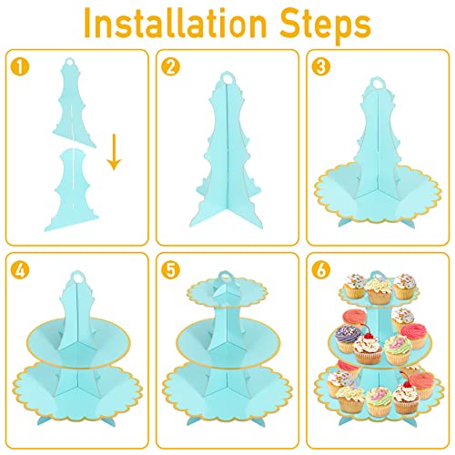 2 Pack Blue Cake Stand Cardboard Cupcake Stand 3 Tier Cupcake Cardboard Cake Stands for Afternoon Tea 3 Tier Cake Stand for Birthday,Wedding,Mother's Day,Baby Shower