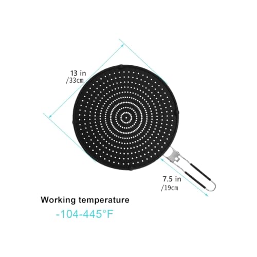 - Value Silicone Splash Screen Set: The set comprises 2 silicone splatter screens, each with a diameter of 12.5 inches/33cm and handles measuring 7.5 inches/19cm in length. This versatile splatter screen for frying pans serves multiple functions, acting as a splatter shield, drain board, cooling mat, and strainer, simplifying your cooking process.