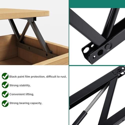 - 【HIGH-QUALITY MATERIAL】: Folding lift coffee table hinges are made of thick steel with black electrophoretic paint on the surface. coffee table lift top hardware product is thick, has strong load-bearing. When opened, it can support 20 to 70 pounds, lift top coffee table hardware does not support too heavy weight. Please be careful and slow when handling.