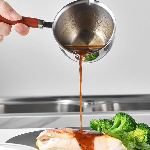 • 【MATERIAL】- The butter warmer pot's body is made of stainless steel, which is thickened, sturdy, smooth, and easy to clean. The handle is made of wood, which is comfortable grip and anti-scald.