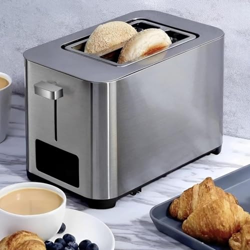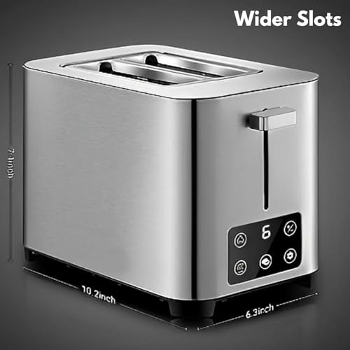 2 Slices Bread Toaster, 750W Toaster Oven with Full Touch Screen LED Display, 6 Browning Setting Stainless Steel Breakfast Makeing Machin 140 * 40mm Slot, for Bagels & Breads