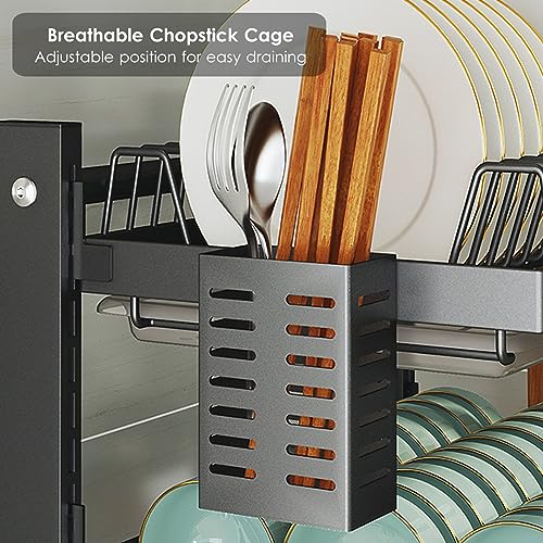 2 Tier Dish Dryer Rack with Drip Tray & Drink Holder Large Capacity Utensil Holder Space Saving Kitchen Countertop for Efficient Drying & Easy Access