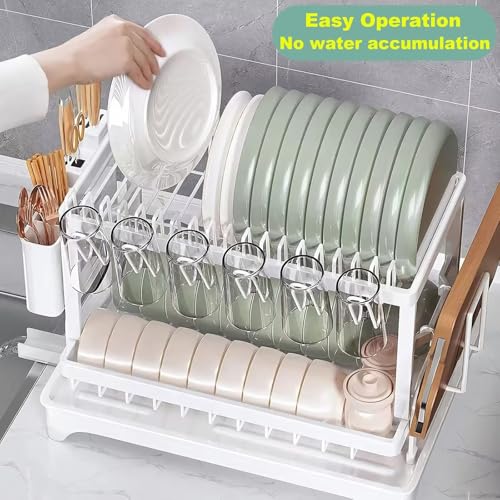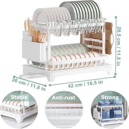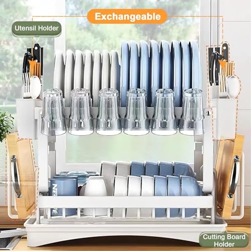 • 【2-Tier Design & Large Capacity】The kitchen counter dish drainer is designed with 2-tier removable design, which not only fully saves kitchen space such as countertops, corners, windowsills, etc., but also allows you to store different types and sizes of kitchen utensils. Including plates, bowls, cups, knives, and cutting board.