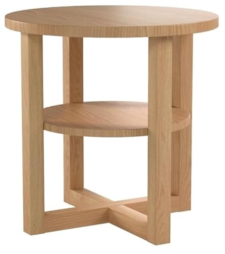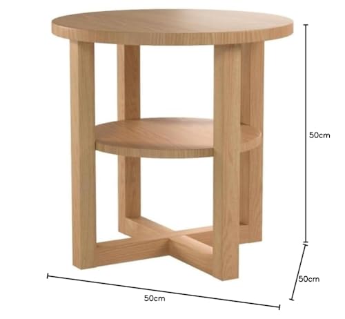 2 Tier Oak Effect Round Side Table, Wood End Table with Storage Modern Sofa Table, Small Lamp Plant Coffee Table, Night stand for Living Room Bedroom and Small Spaces, Home Décor (Contemporary, Oak)