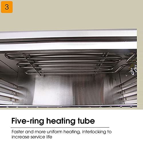 - Efficient Convection Heating: Designed for rapid and even heating, this convection toaster oven excels at broiling or roasting turkey, fish, and beef, baking pizzas, cookies, or cakes, toasting bread, and reheating leftovers. The efficient air circulation promotes even cooking and enhances flavors in all your dishes.