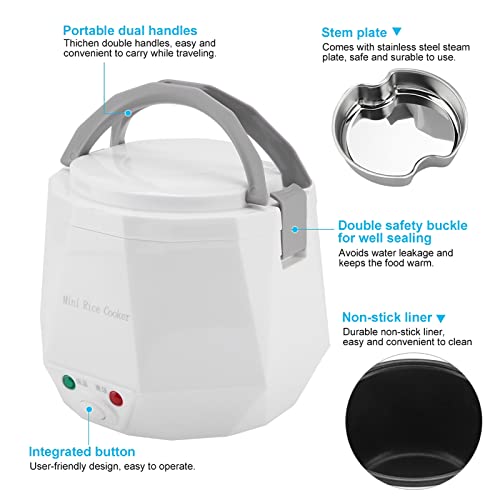 24V 1.6L Multifunctional Electric Rice Cooker, Mini Travel Food Steamer, Portable Meal Heater Food Warmer for Both Home And Trucks To Cook Rice Porridge Nutritious Eggs Warm Dishes (White)