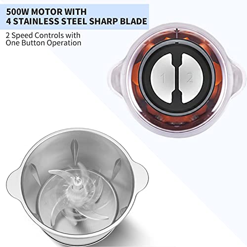2L Electric Mini Food Chopper Food Processor Meat Grinder,4 Bi-Level Blades,500 W Stainless Steel Bowl Kitchen Mincer Blender for Meat, Vegetables, Fruits, Onion and Nuts,Garlic Baby Food