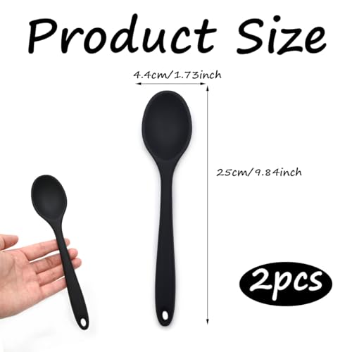 - SET INCLUDES: You will receive 2pcs black silicone spoons, measuring 25×4.4cm/9.84×1.73inch, compact and lightweight, easy to carry and store for daily home cooking.