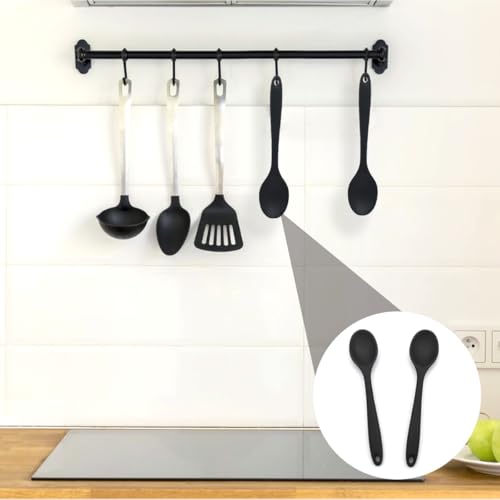 2Pcs Silicone Spoon Black Nonstick Kitchen Cooking Spoon for Stirring Scooping Kitchen Cooking Use