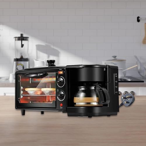 3 in 1 Breakfast Center Station,with Coffee Machine,Oven Breakfast Maker,Portable Toaster with Frying Pan for Bread Sausages