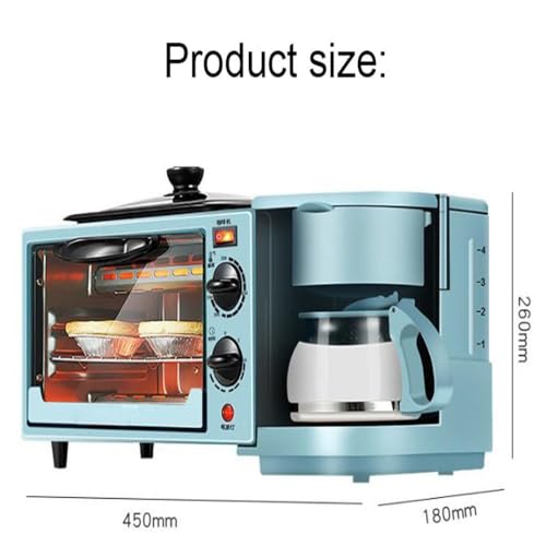 3 in 1 Breakfast Maker Station, Multifunction Breakfast Machine with 9L Toaster Electric Oven, 600ML Coffee Maker, Non-stick Frying Pan, Egg Sandwich Maker, 100℃-230℃ Temperature Control ( Color : Blu