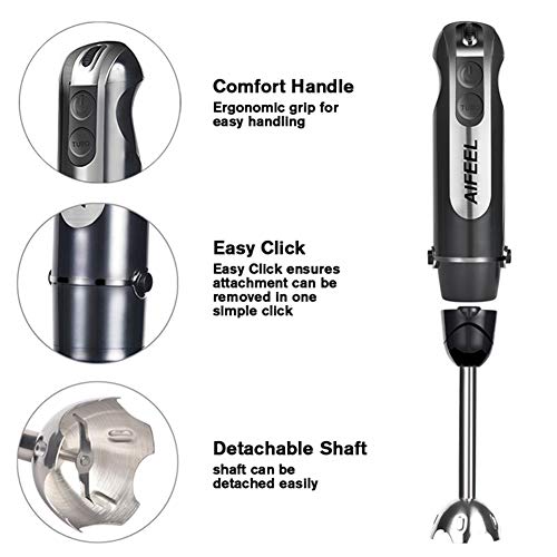 - ★ Healthy & Easy to Clean: Hand blender is made of food grade material, BPA Free. Blender is detachable, can be easily cleaned by water. (Notice: Can't be cleaned in the dishwasher)