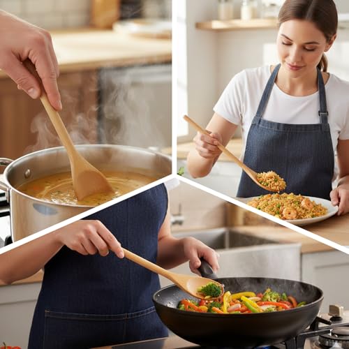 - User-Friendly Characteristics: The long handles keep hands safely distanced from heat sources; These wooden spoons for cooking feature rounded edges and consistent thickness for balanced handling; Simple maintenance requirements make these wooden cooking utensils convenient for regular kitchen use.