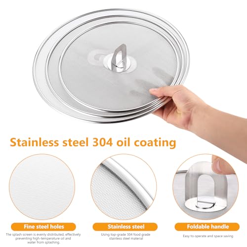 3-Piece Stainless Steel Frying Pan Splatter Screen Set – Mesh Cooking Splash Guard & Oil-Proof Strainer with Foldable Knobs (9.8, 11.4, 13 inches)