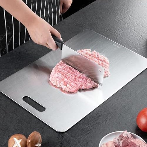 - ✅Preserves your health: Our board is made of medical-grade stainless steel, the same material used in most surgical implants. Unlike wooden or bamboo boards, there are no cuts, gouges or punctures when the kitchen knife cuts, and this board does not absorb liquids, making it the safest choice for your kitchen.