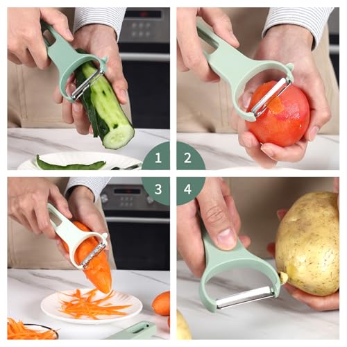 - 3-Piece Assorted Peelers Set includes straight, serrated and julienne Peelers, Great for peeling vegetables and fruits, such as carrots, potatoes,cucumbers, cabbage, citrus fruit, apples, orange, tomatoes, lemon, mango,peaches and more; carrot shredder