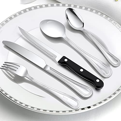 30 Piece Cutlery Set with Steak Knives, Homikit Stainless Steel Flatware Silverware Sets Service for 6 People, Pearled Edge Tableware Included Knives Forks Spoons, Mirror Polished, Dishwasher Safe