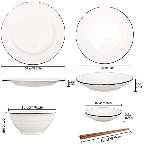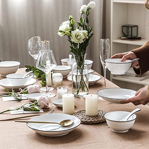- Creative lines design: this tableware set made of white porcelain surface has soft black lines and thread design, it is thick and smooth, excellent texture, more sensitive and durable than ordinary bone china. Whether in the kitchen or in the living room, it is a perfect decoration.