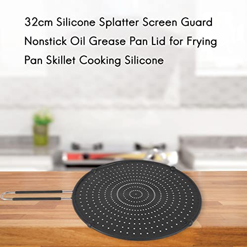Smallterm 32cm Silicone Splash Guard – Nonstick Oil Grease Cover for Frying Pan & Skillet Cooking