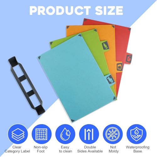 - 【Food Safety Colour Coding】 4 distinct colours for raw meat, seafood, vegetables & cooked food. Prevents cross-contamination with clear visual cues. Hygienic design meets NHS food safety guidelines.Chopping board set with stand size: 310mm x 240mm