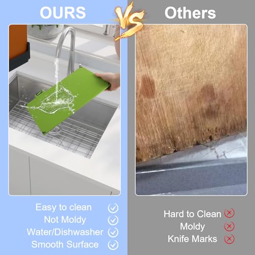 - 【Anti-Slip & Space-Saving】 Non-slip feet grip countertops securely. Reversible boards prevent warping; hollow base stores neatly in cabinets. Ideal for small kitchens.